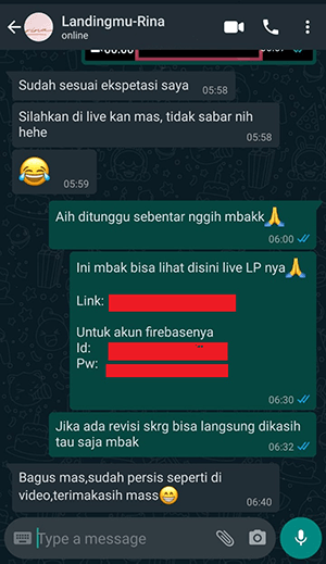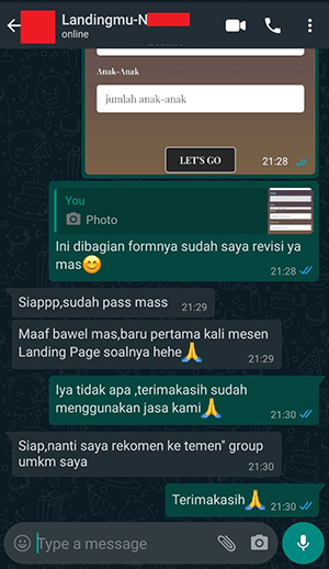 Kami menyediakan form Whatsaap supaya mereka bisa berinteraksi langsung dari LandingPagemu.